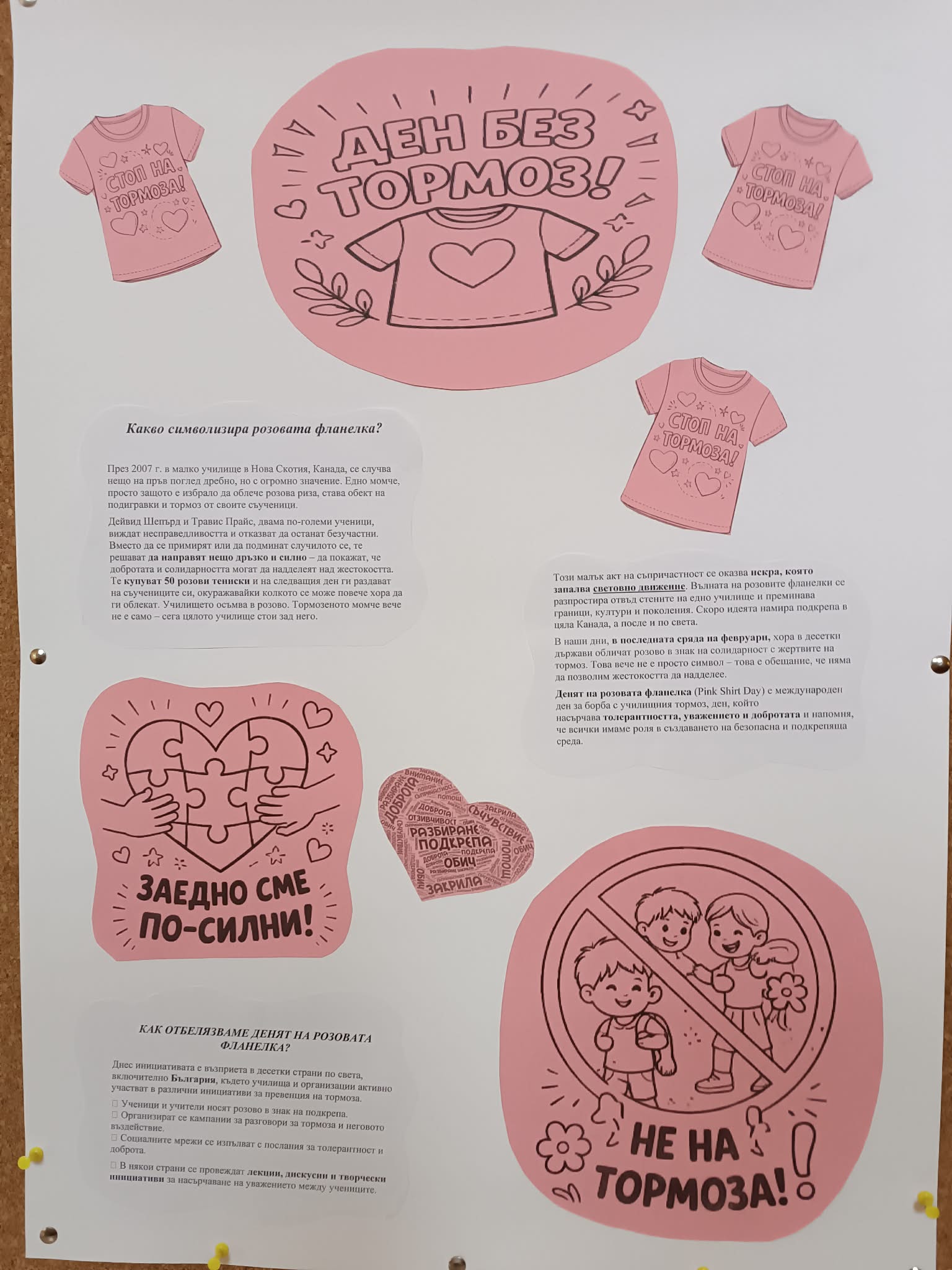 Денят на розовата фланелка ни напомня, че тормозът няма място в училище и че всеки от нас носи лична отговорност да бъде част от промяната – чрез добри думи, подкрепа и смелост да застане срещу несправедливостта.