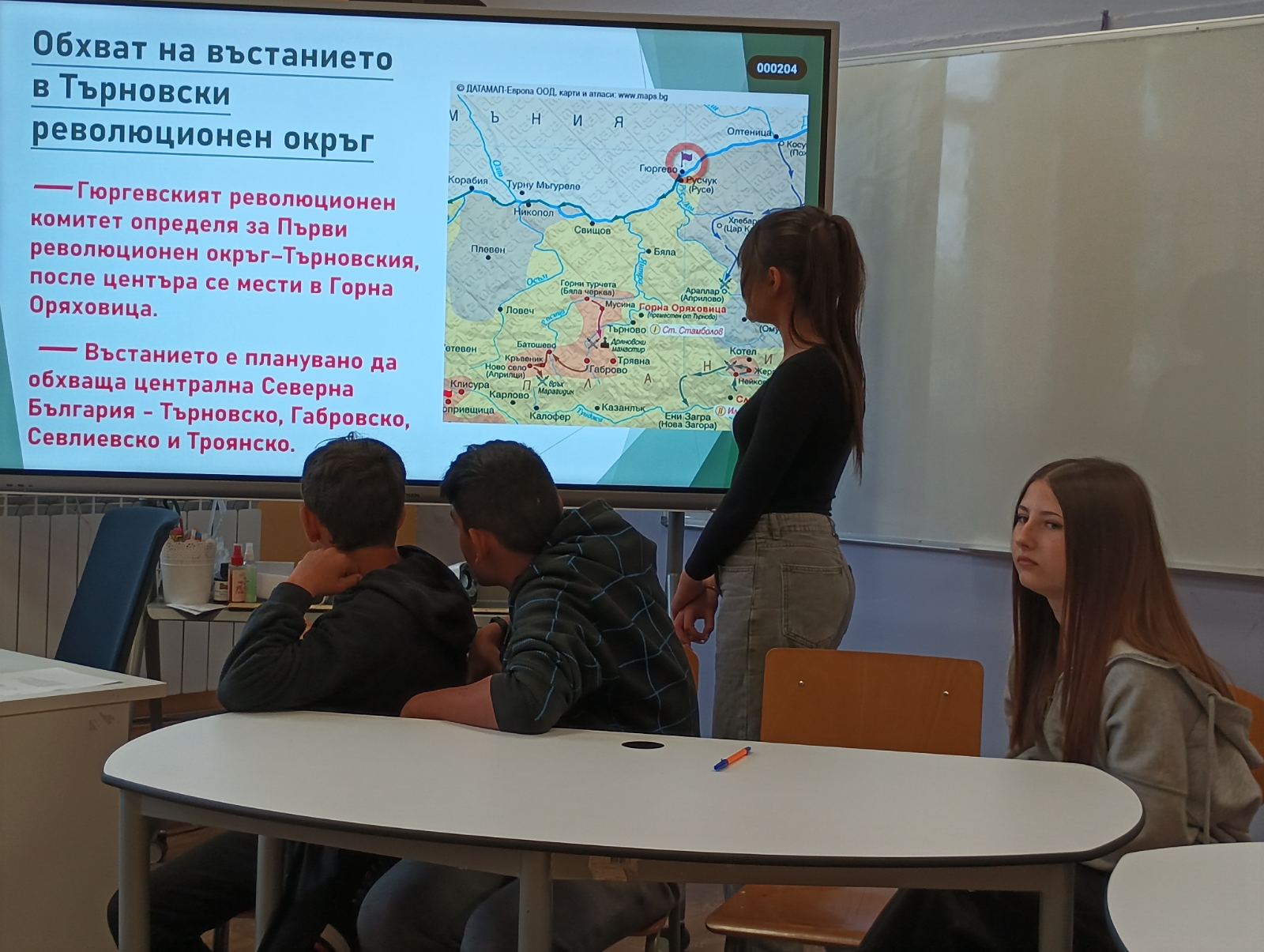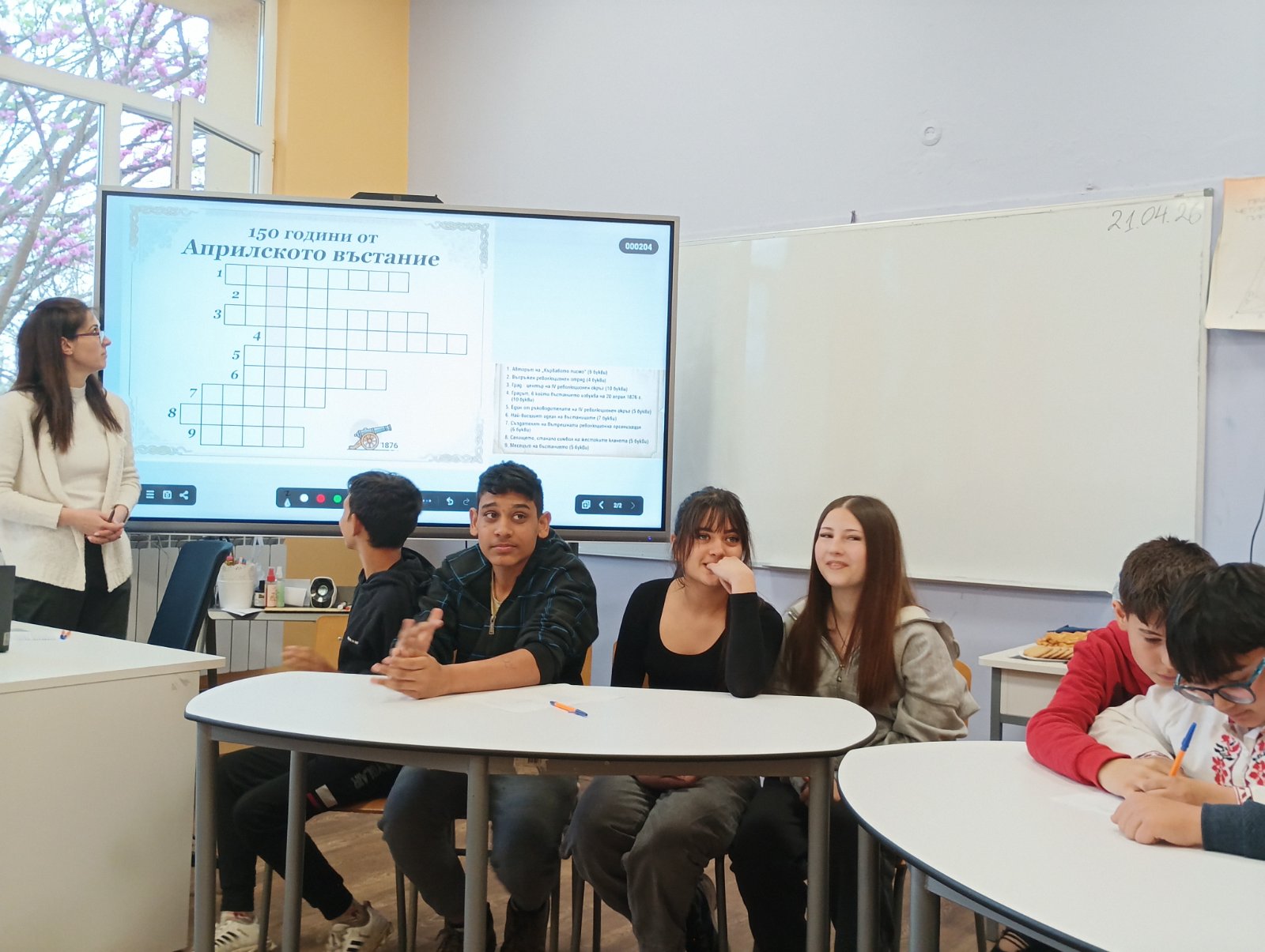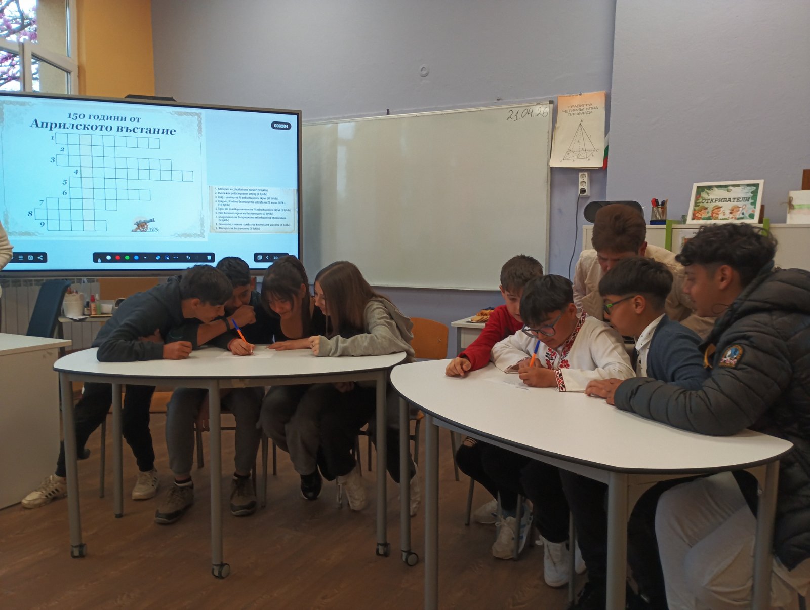 Викторината премина в три етапа. В първия етап бяха представени презентации от Анастасия Карабецка на тема „Априлското въстание – четвърти Пловдивски революционен окръг“ и от Жаклина Желязкова на тема „Априлското въстание – втори Търновски революционен окръг“. Тяхното представяне получи бурни аплодисменти от публиката.Вторият етап включваше решаване на кръстословица, свързана с Априлското въстание, като отборът ни се справи безупречно и постигна най-добър резултат.В третия етап Георги Кирилов и Любчо Кирилов участваха в разпознаване на герои от въстанието, където демонстрираха отлични знания и се представиха блестящо.
