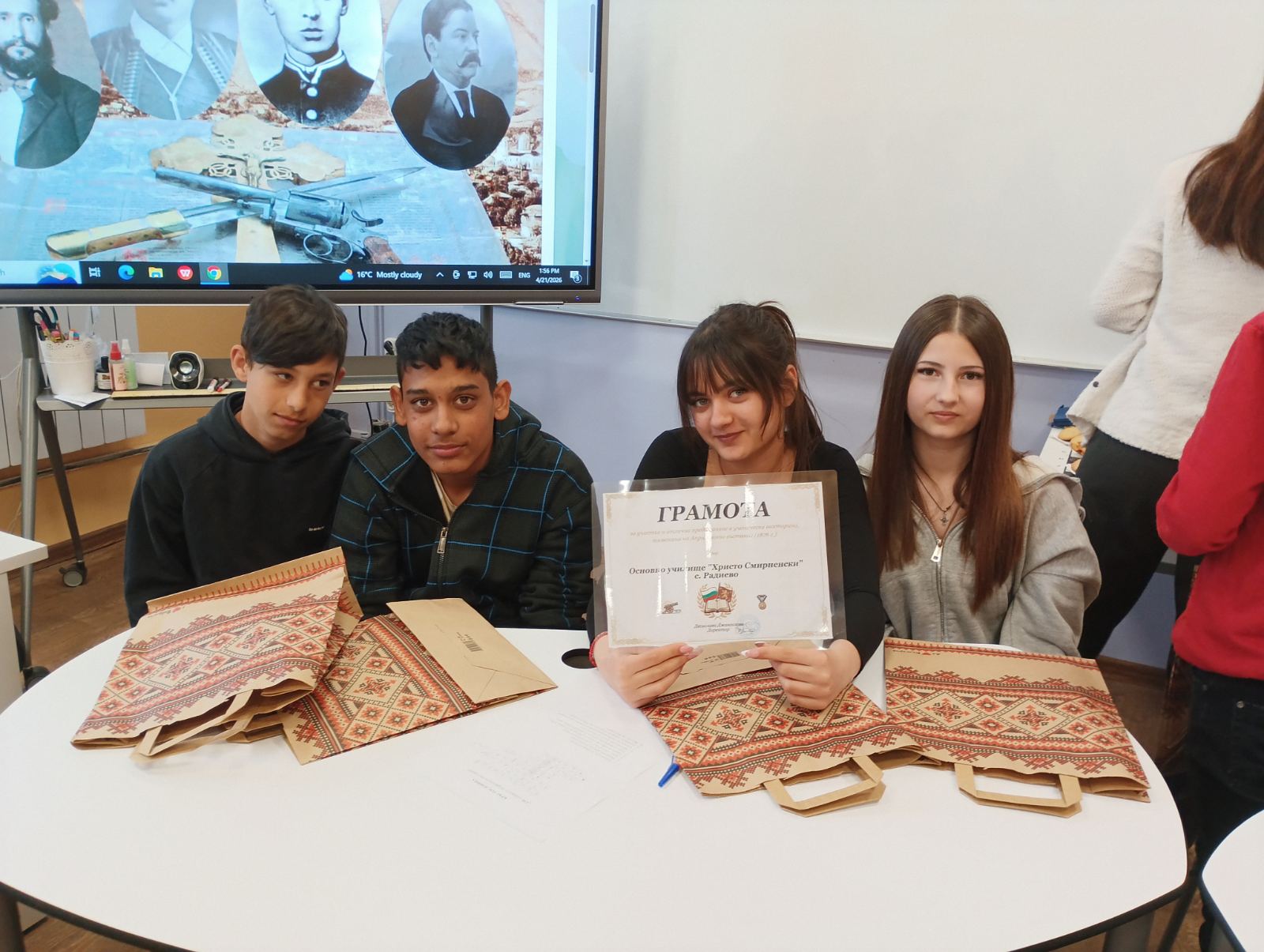 Съдържание на новината: Със съвместна инициатива на ОУ"Христо Смирненски"-с.Радиево и ОУ"Васил Левски"-с.Ябълково бе отбелязана 150 -тата годишнина от Априлското въстание.Домакини на събитието бяха ОУ"Васил Левски"-с.Ябълково.Децата показаха знанията си за значимото историческо събитие в организираната викторина по темата.