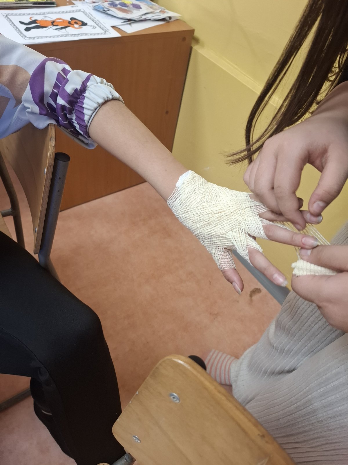 На 19.02.2026 г., по инициатива на Ученическия съвет в ОУ"Христо Смирненски", село Радиево се проведе занятие по оказване на помощ при рани на горни и долни крайници.В занятието участваха ученички от четвърти и шести клас.След запознаване с различните видове дезинфекционни препарати и превързочни материали медицинската сестра Мария Нанева направи демонстрация на различните видове превръзки. След това участниците приложиха знанията и уменията си като направиха превръзка на ръка, коляно и глезен.